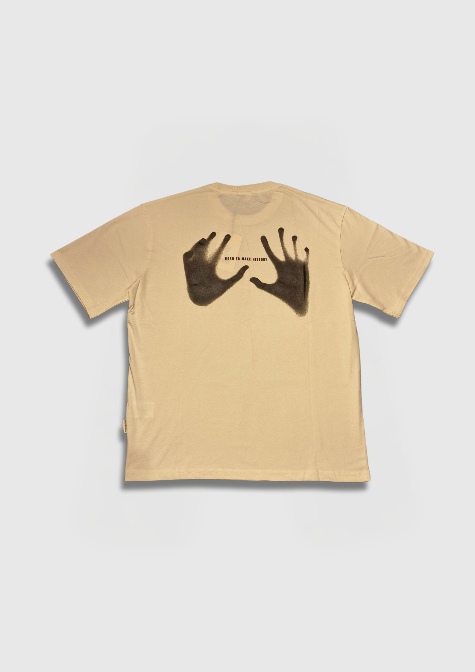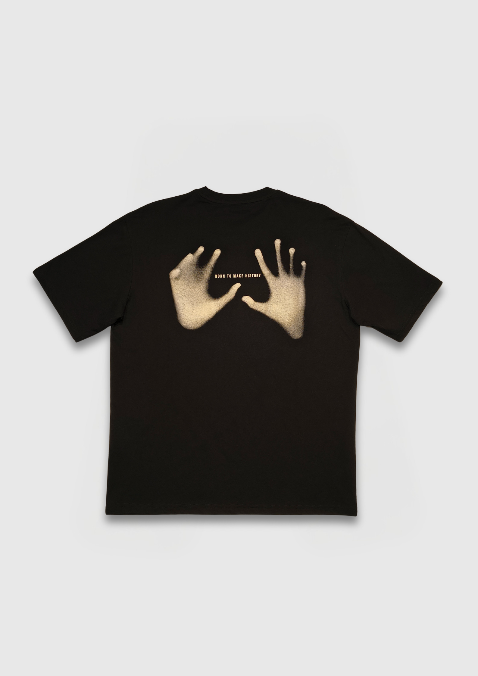 Make a statement without saying a word. This premium cotton tee features a unique airbrushed hand print graphic positioned across the back, centered around the bold phrase “BORN TO MAKE HISTORY.” Designed to stand out, it blends minimal style with meaningful expression — perfect for those who move with purpose.